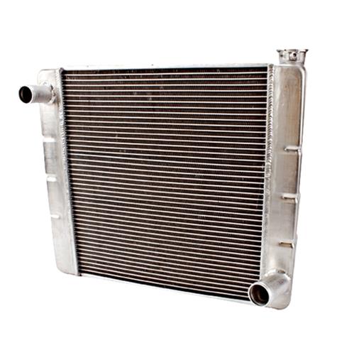 Speedway’s line of universal Chevy radiators makes it easy for budget-minded racers to get a professional-quality aluminum racing radiator. These high performance radiators feature furnace-brazed construction, two rows of large 1" aluminum tubes, billet filler necks and a maximum number of fins per inch for great heat transfer. They are not available with transmission coolers and they do not come with mounting brackets.