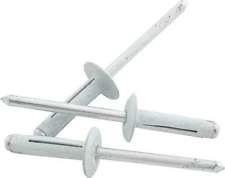 3/16" dia, .0"-.375 grip thickness, Aluminum Body, Steel Mandrel, 250 per box, Small Head, White, Pop Rivet, Exploding rivets are split in the grip surface so when pulled tight they fold up building a washer type affect to pull the body panels closer together.