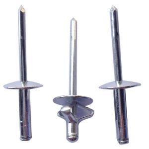 3/16" dia, .0"-.375 grip thickness, Aluminum Body, Steel Mandrel, 250 per box, Large Head, Mill Finish/Silver, Pop Rivet, Exploding rivets are split in the grip surface so when pulled tight they fold up building a washer type affect to pull the body panels closer together.
